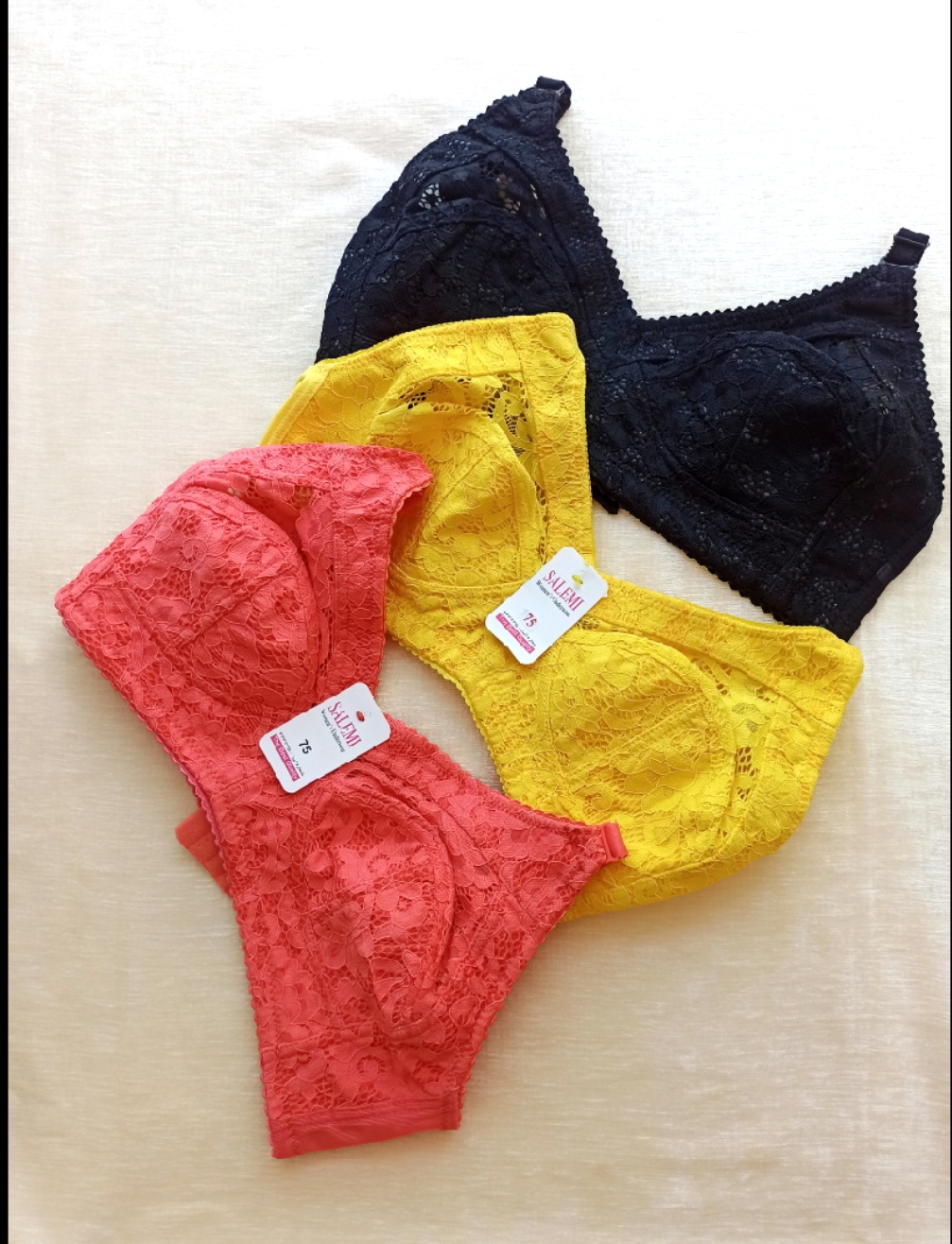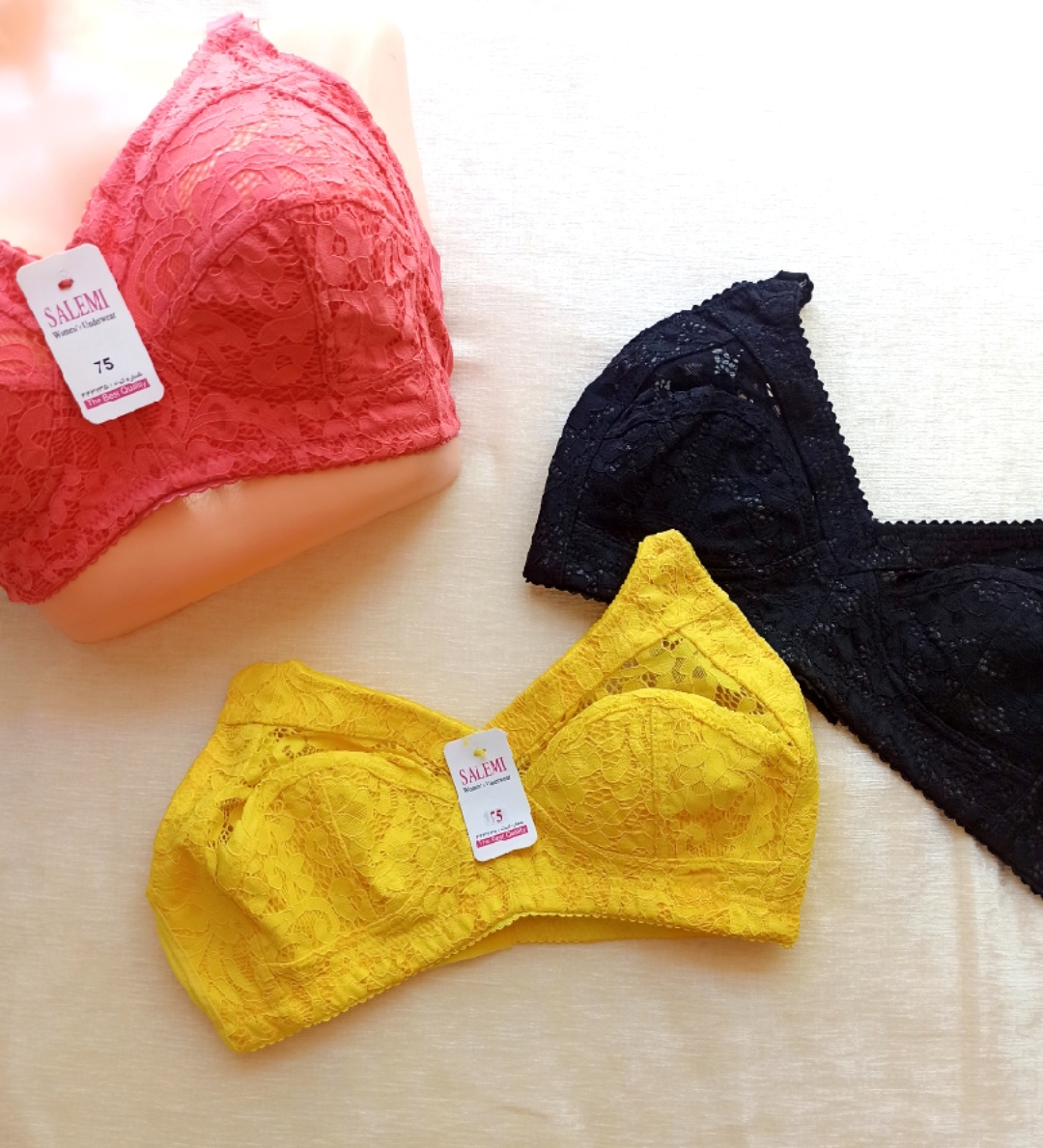 کد 🌺 سوتین تمام گیپور 🌺بدون فنر 🌺زیر نیمه نخ،نیم گیپور 🌺برند سالمی 🌺نرم و لطیف 🌺سایز 75-80-85-90 🌺گلبهی،مشکی،زرد 🌺قیمت #سوتین