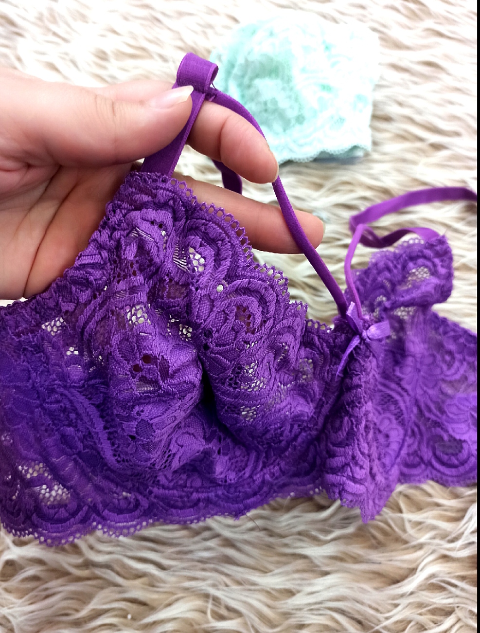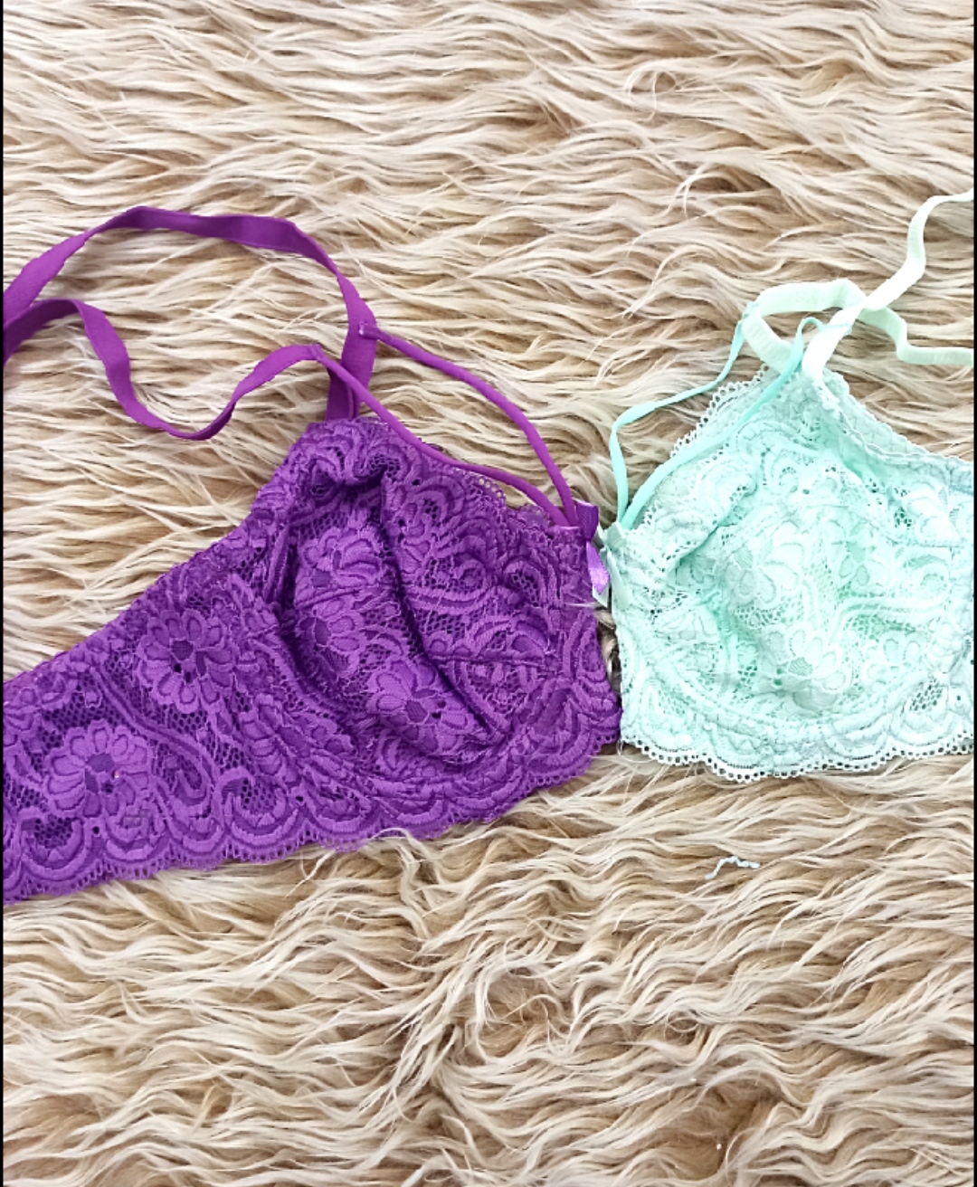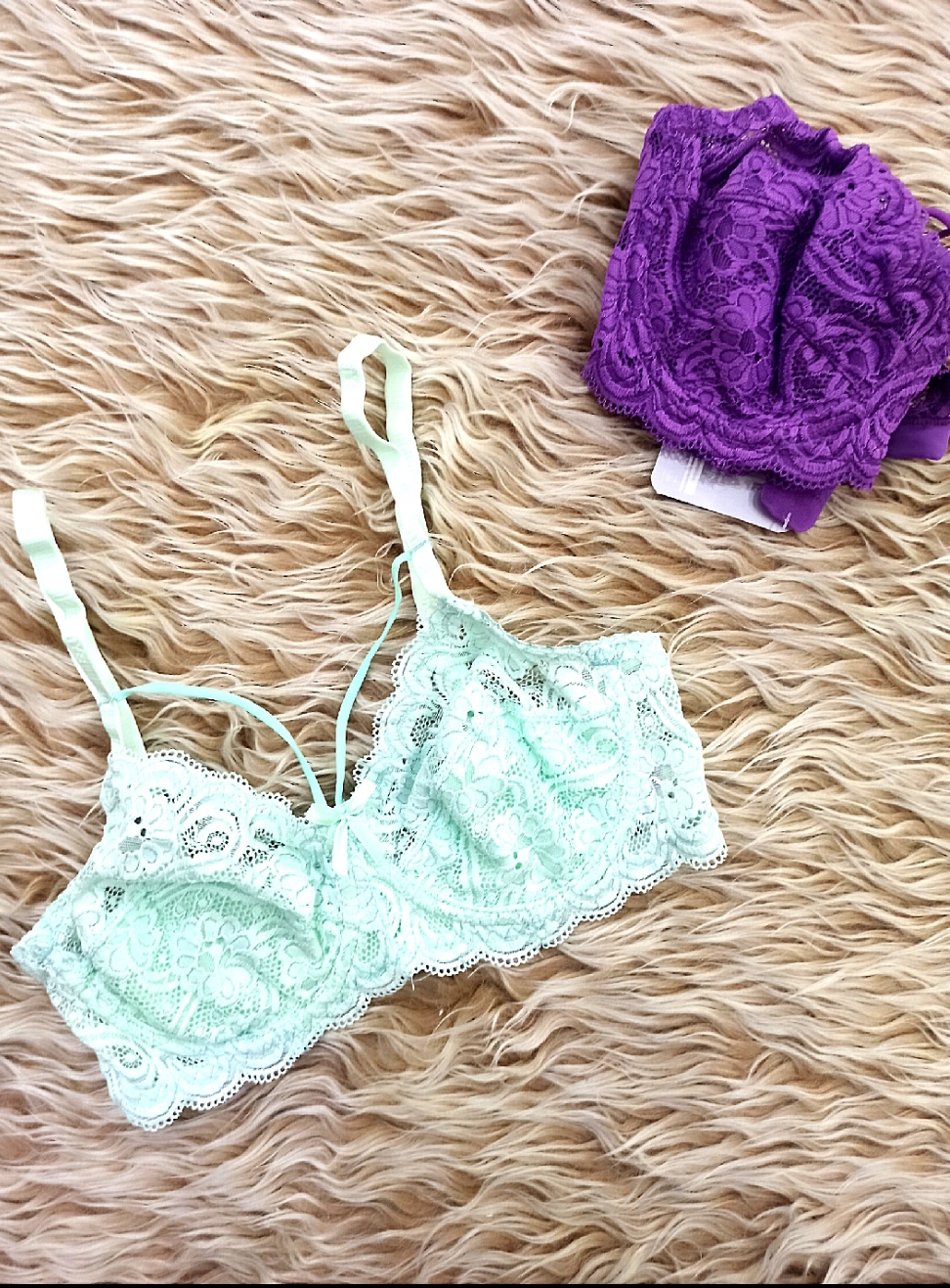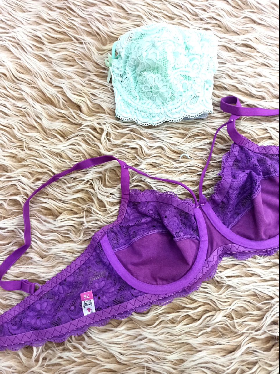 کد 119 🏵️ سوتین تک گیپور 🏵️زیر لایه نخ،زیر فنردار 🏵️هارنس دار /بنفش و صابونی 🏵️گیپور نرم و لطیف 🏵️برند ژوبین 🏵️سایز بندی75تا90 🏵️قیمت190 #سوتین