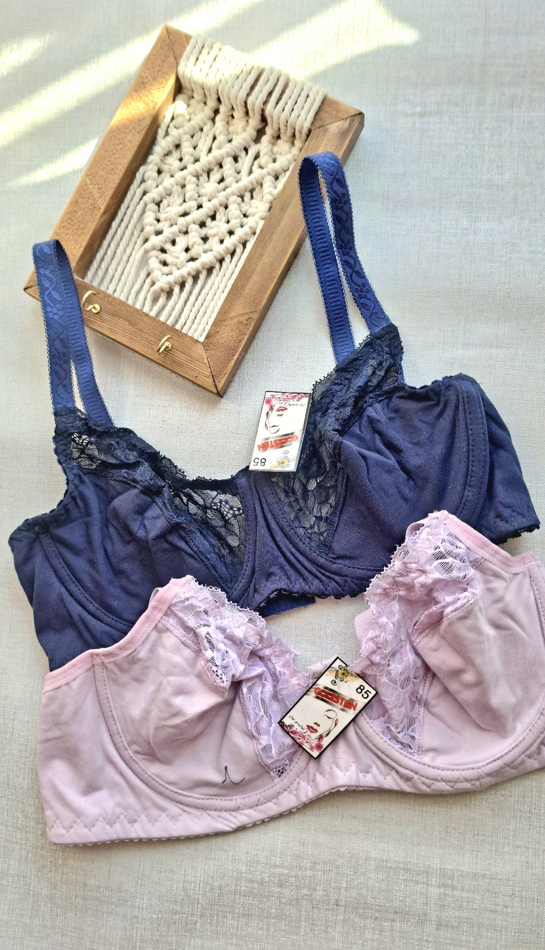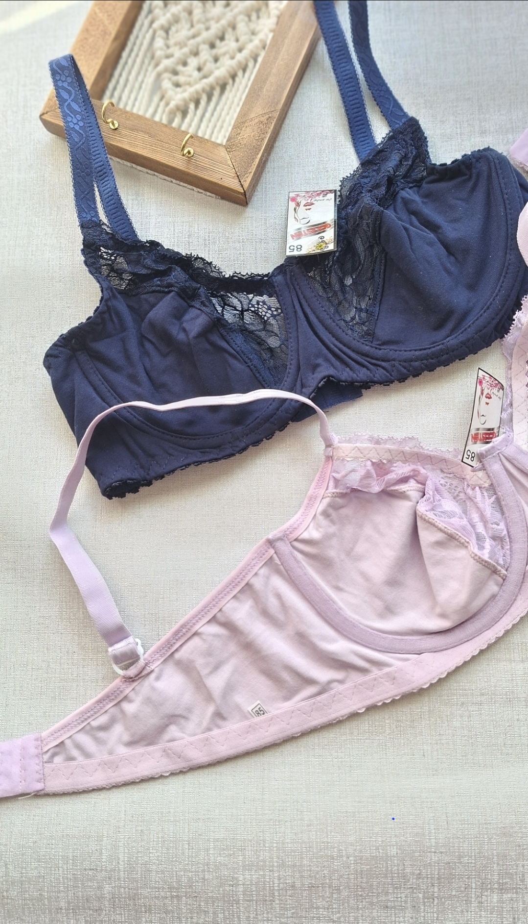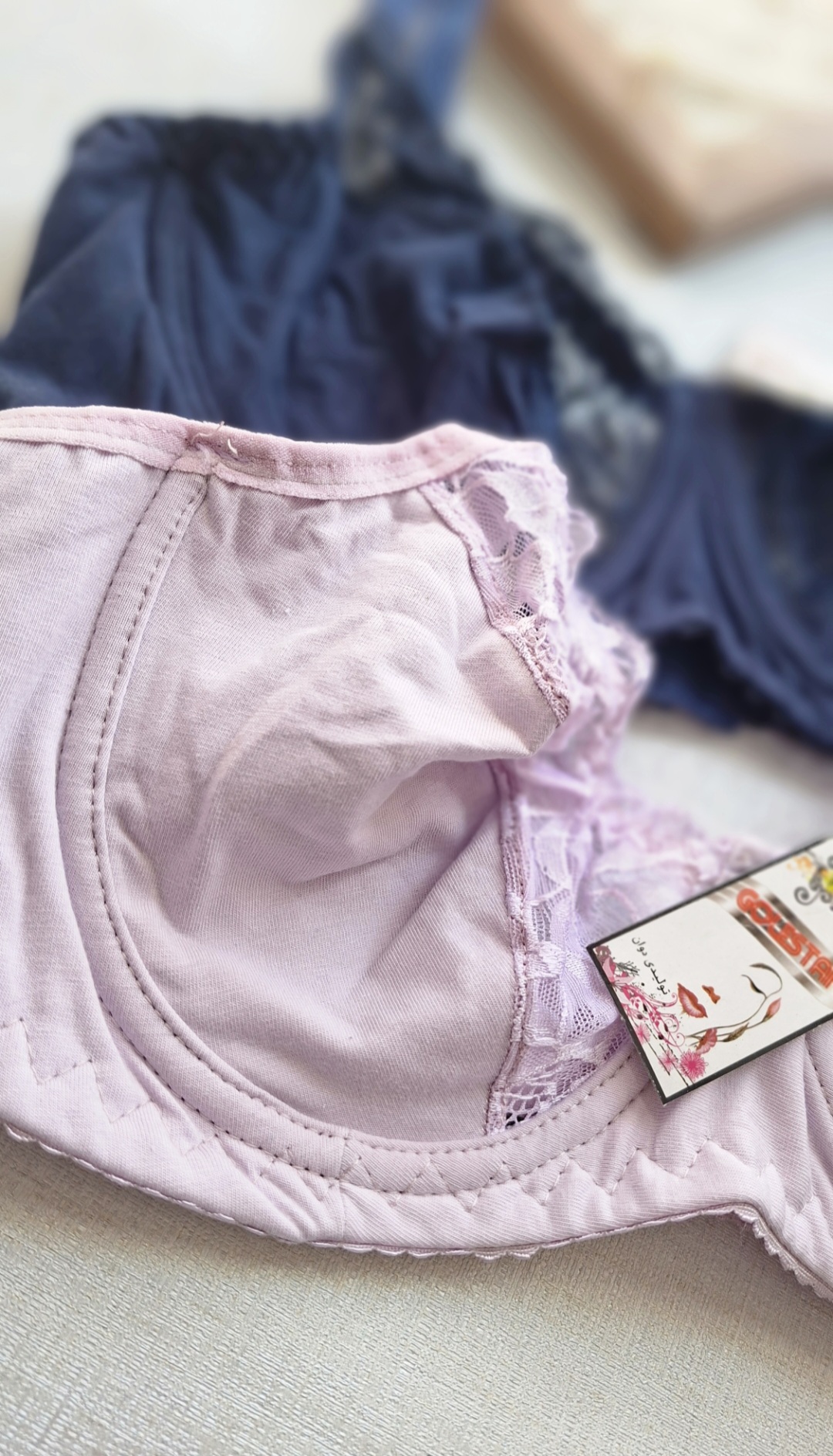 کد۱۵۸ ♧سوتین تمام نخی ♧بالا گیپور ♧فنردار ♧یاسی و سورمه ای ♧سایز بندی۷۵_۸۰_۸۵ ♧قیمت #سوتین