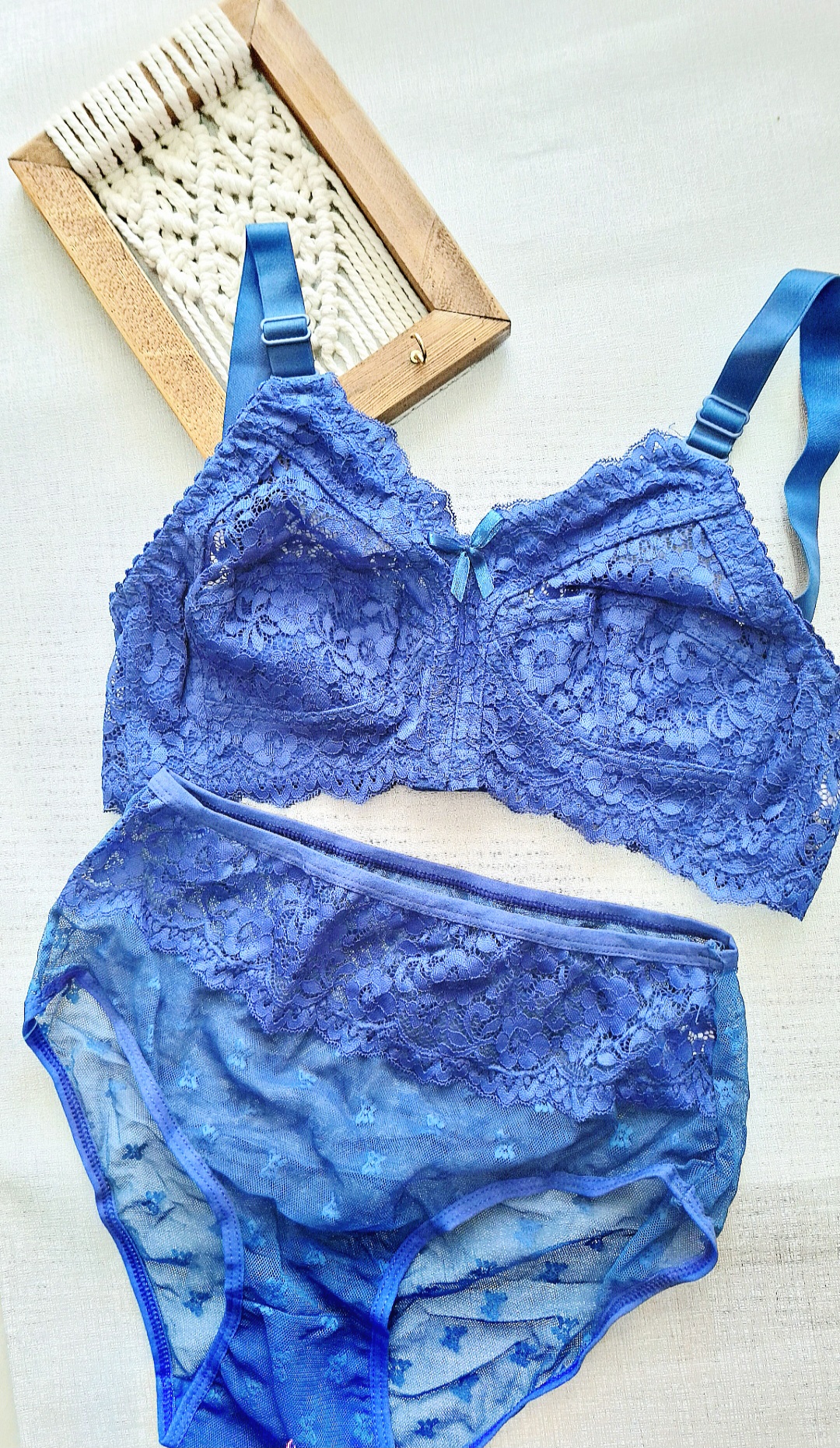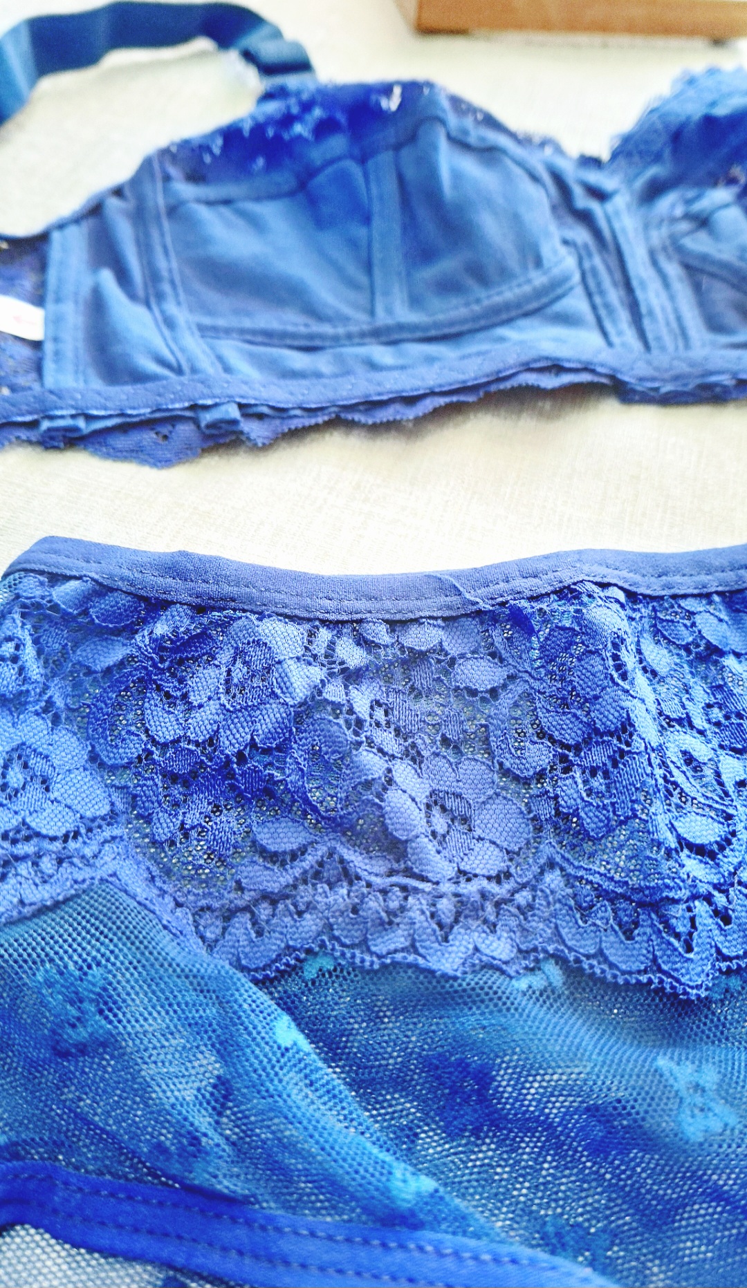 کد۱۶۲ *ست گیپور *بدون فنر *زیر نخ.رویه گیپور اعلا *برند ژوبین *دو رنگ سفید و آبی نفتی *سایز۷۵_۸۰_۸۵_۹۰ *بندهای سرشانه ۲سانتی *قیمت #ست
