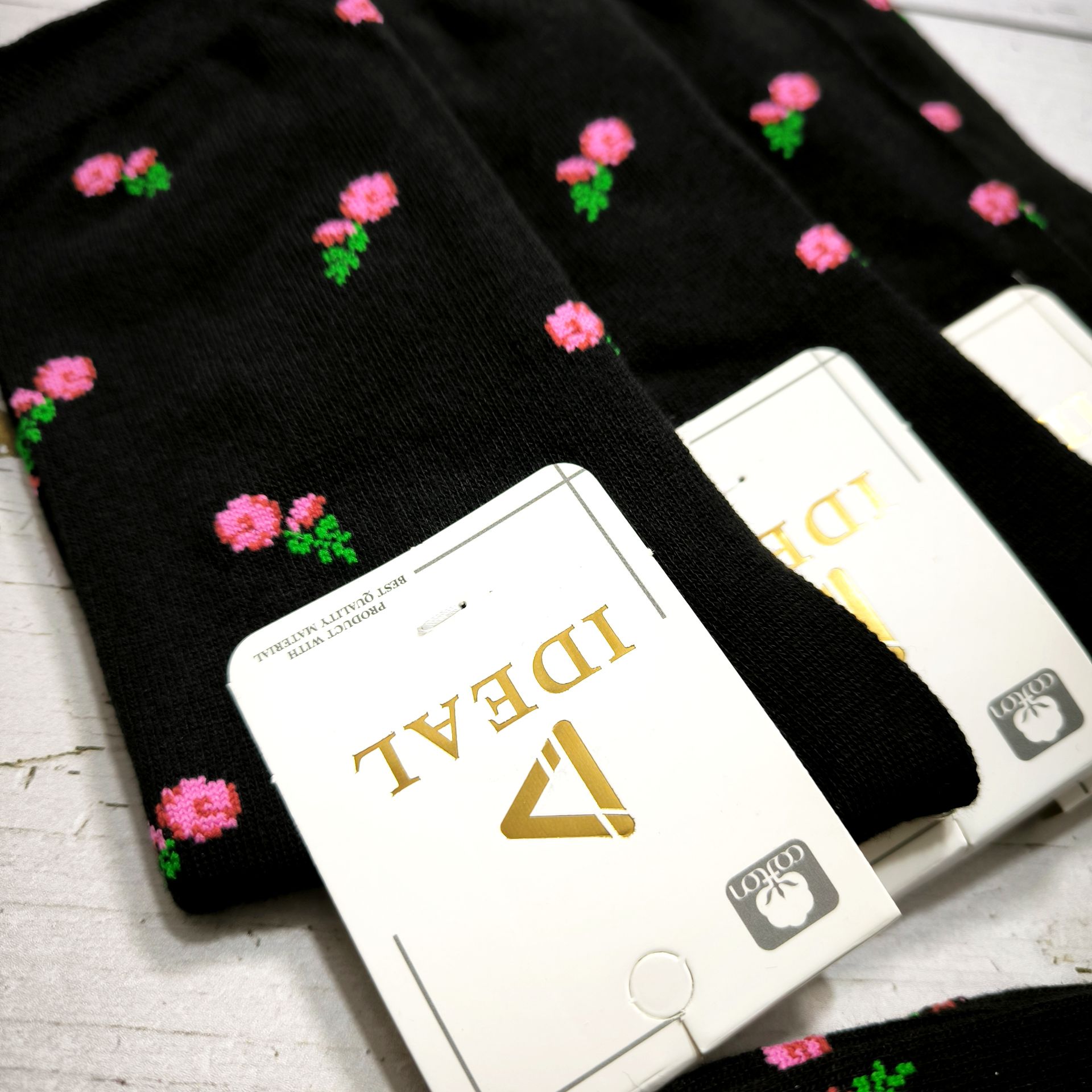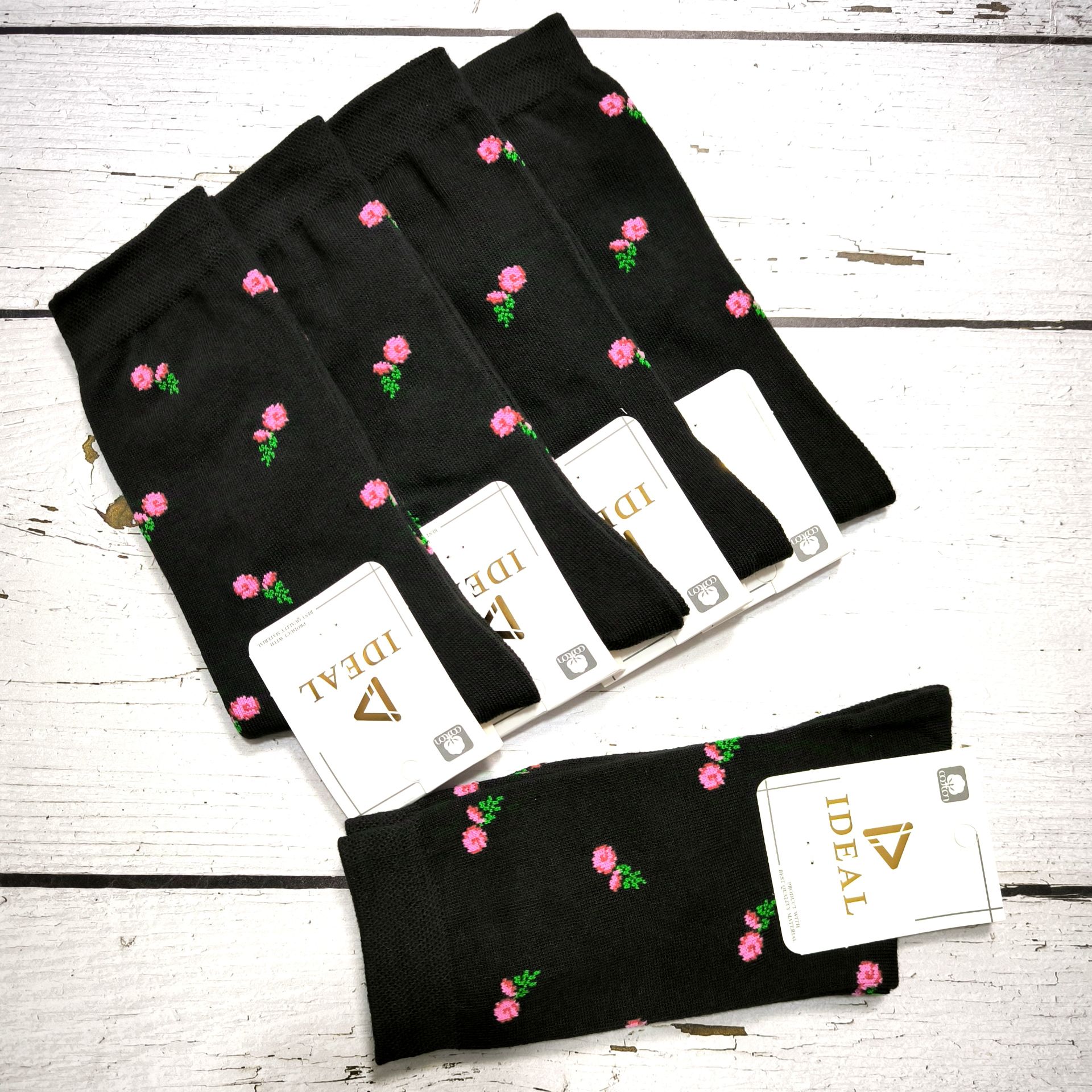 جوراب نیم ساق(کمی بلند تر از نیم ساق معمول) مشکی گلدار جنس اعلا نخ پنبه فری سایز ۳۶ تا ۴۰ قیمت #جوراب